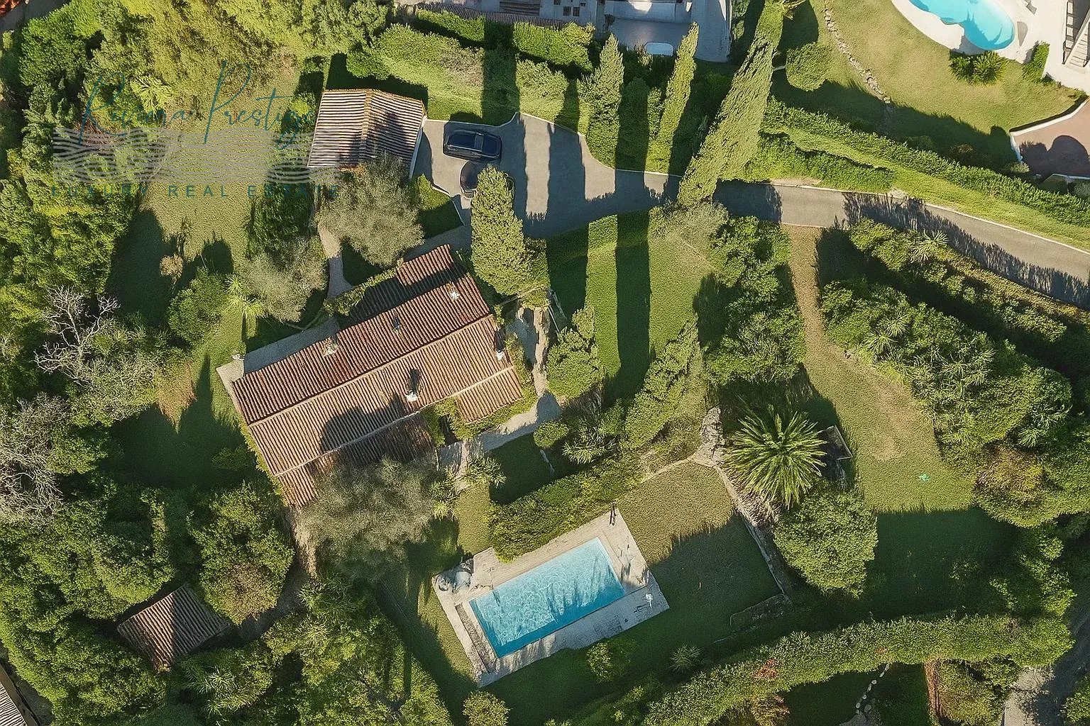 В типично средиземноморском саду растут столетние оливковые деревья, величественные кипарисы и вьющиеся глицинии, которые в хорошую погоду украшают фасады. Обширная терраса с тройным выходом и крытый бассейн (11 x 5 м) - идеальное место для отдыха и наслаждения тишиной и покоем, а также закатами над холмами.